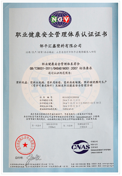 已通過ISO9001:2008質(zhì)量管理體系、ISO14001:2004環(huán)境管理體系以及OHSAS18001:2007職業(yè)健康安全管理體系認證。公司產(chǎn)品符合國家環(huán)保要求,技術(shù)指標達均達到GB/T15234-94,GB/T5738-1995國家標準。