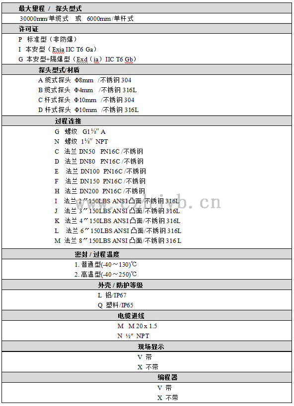 外殼                                            鋁,塑料,不銹鋼316L