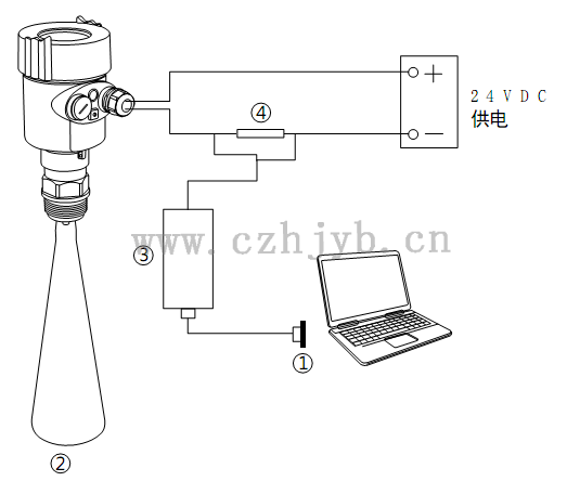 (4~20) mA/HART(兩線制)      供電電源和輸出電流信號共用一根兩芯屏蔽電纜線。具體供電電壓范圍參見技術數據。對于本安型須在供電電源與儀表之間加一個安全柵。